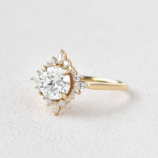 1.5 CT Round Cluster Moissanite Engagement Ring