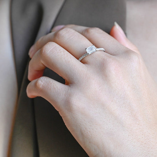 1.5 CT East West Emerald Pave Moissanite Engagement Ring