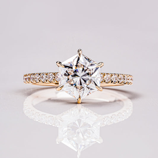 1.3 CT Hexagon Hidden Halo & Pave Moissanite Engagement Ring