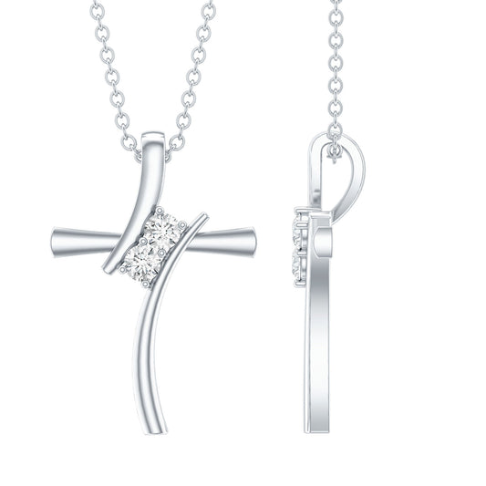 1.24 TCW Round Moissanite Heart Cross Pendant